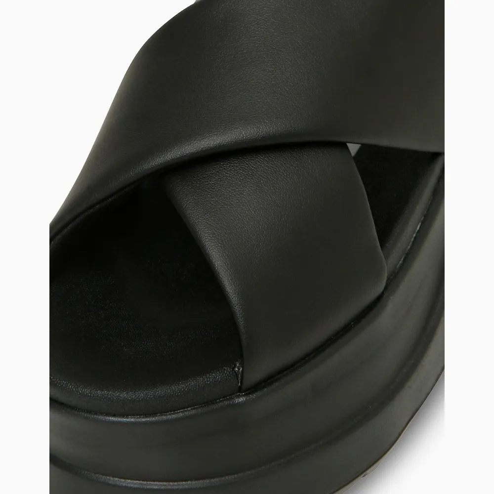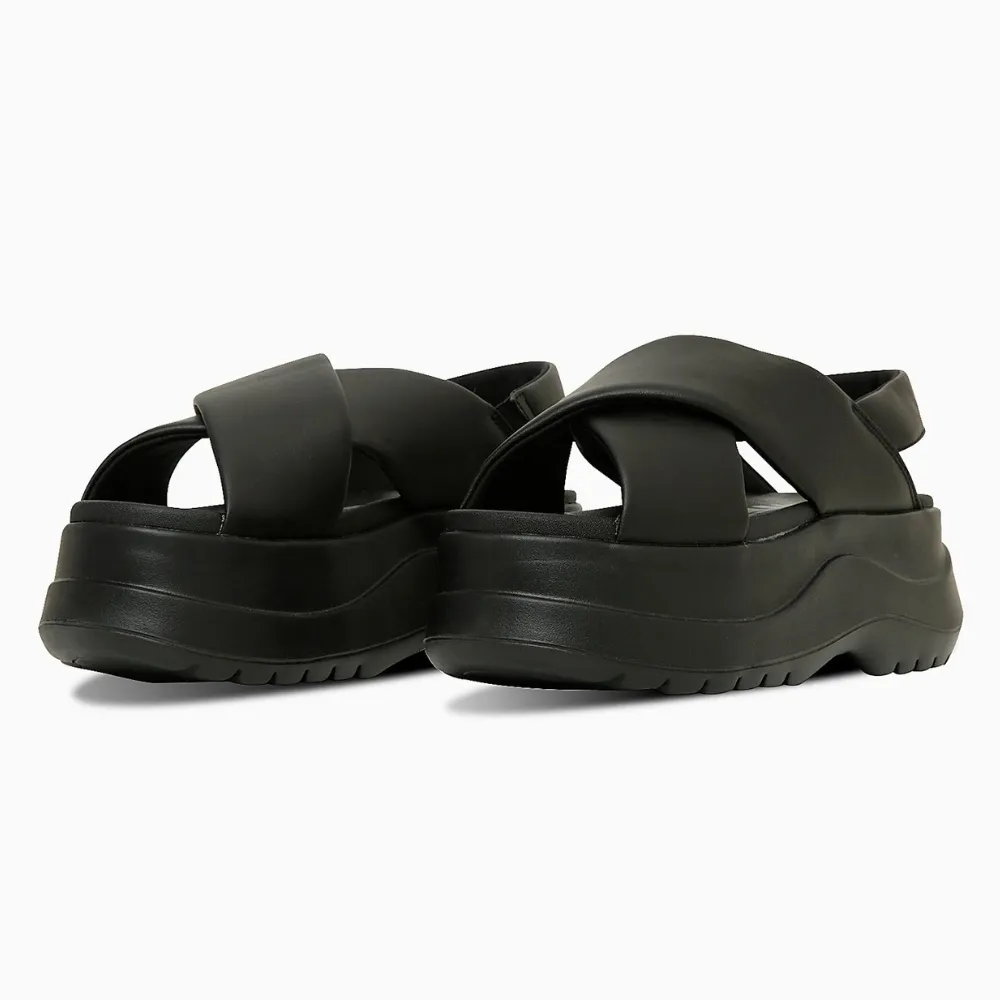 ・柔軟蓬鬆質感鞋面材質,搭配交叉寬帶設計