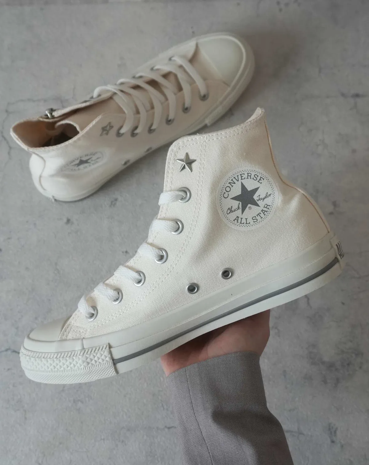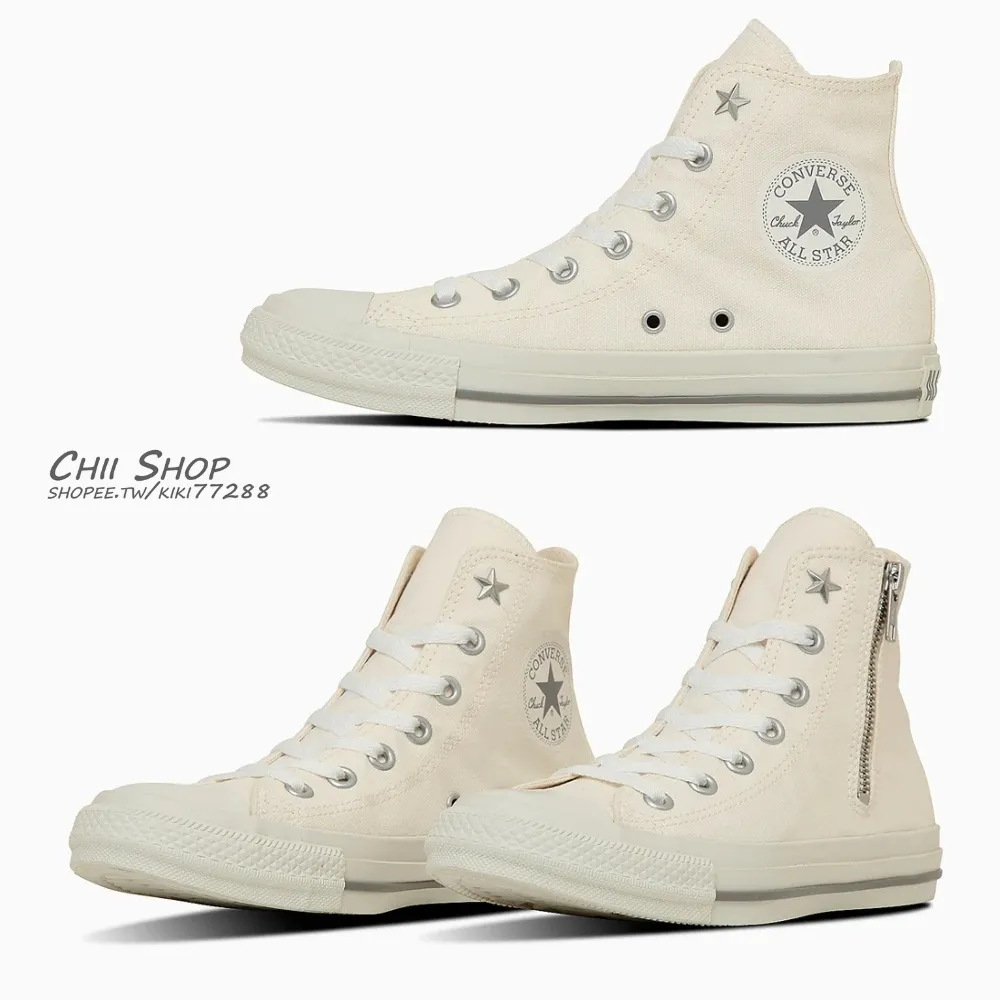 預購 日本限定 Converse NC Z 高筒 側拉鍊星形鉚釘 奶油白